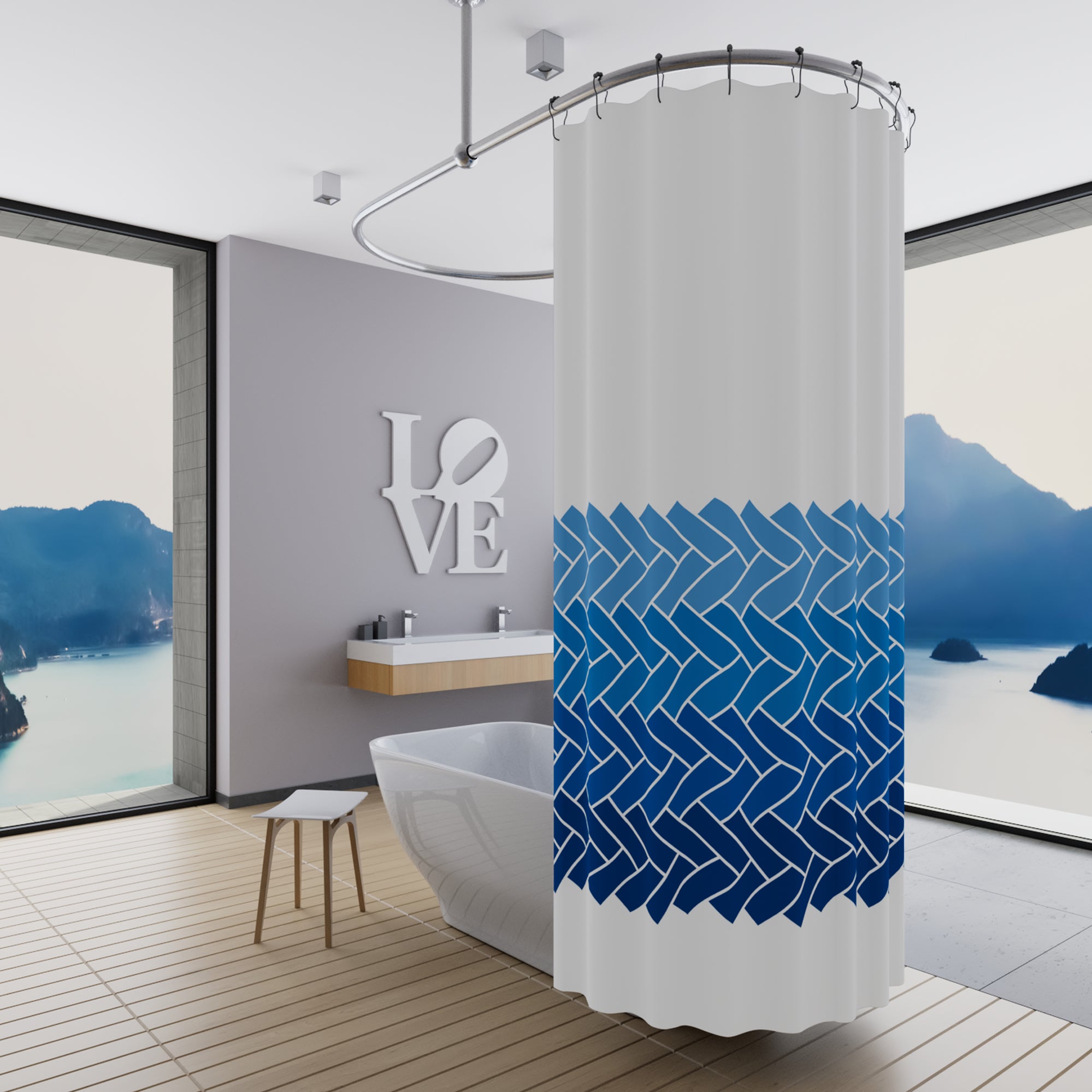 This pretty Ombre Blue shower curtain set features a modern herringbone geometric design in rich shades of blue color which is both simple and elegant.