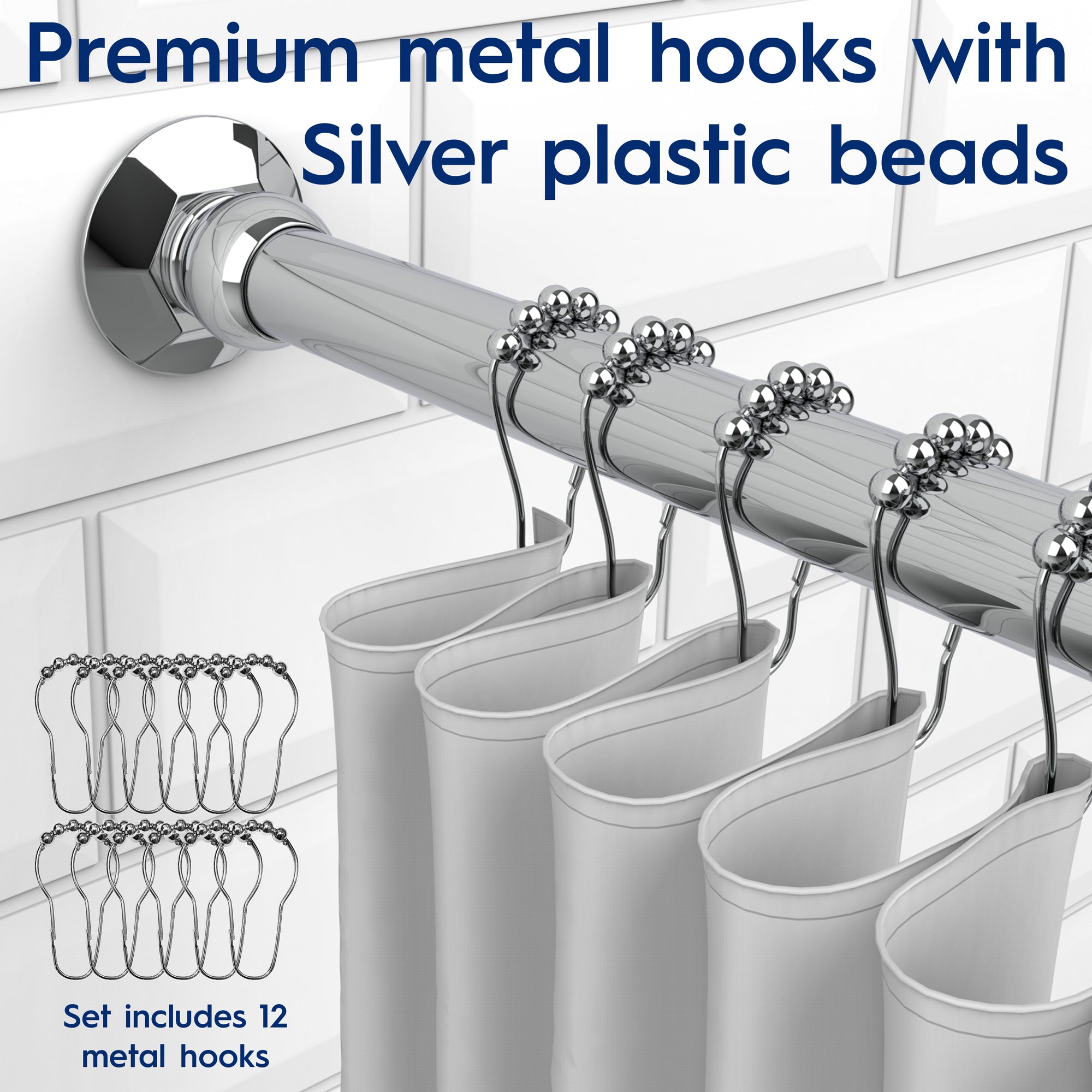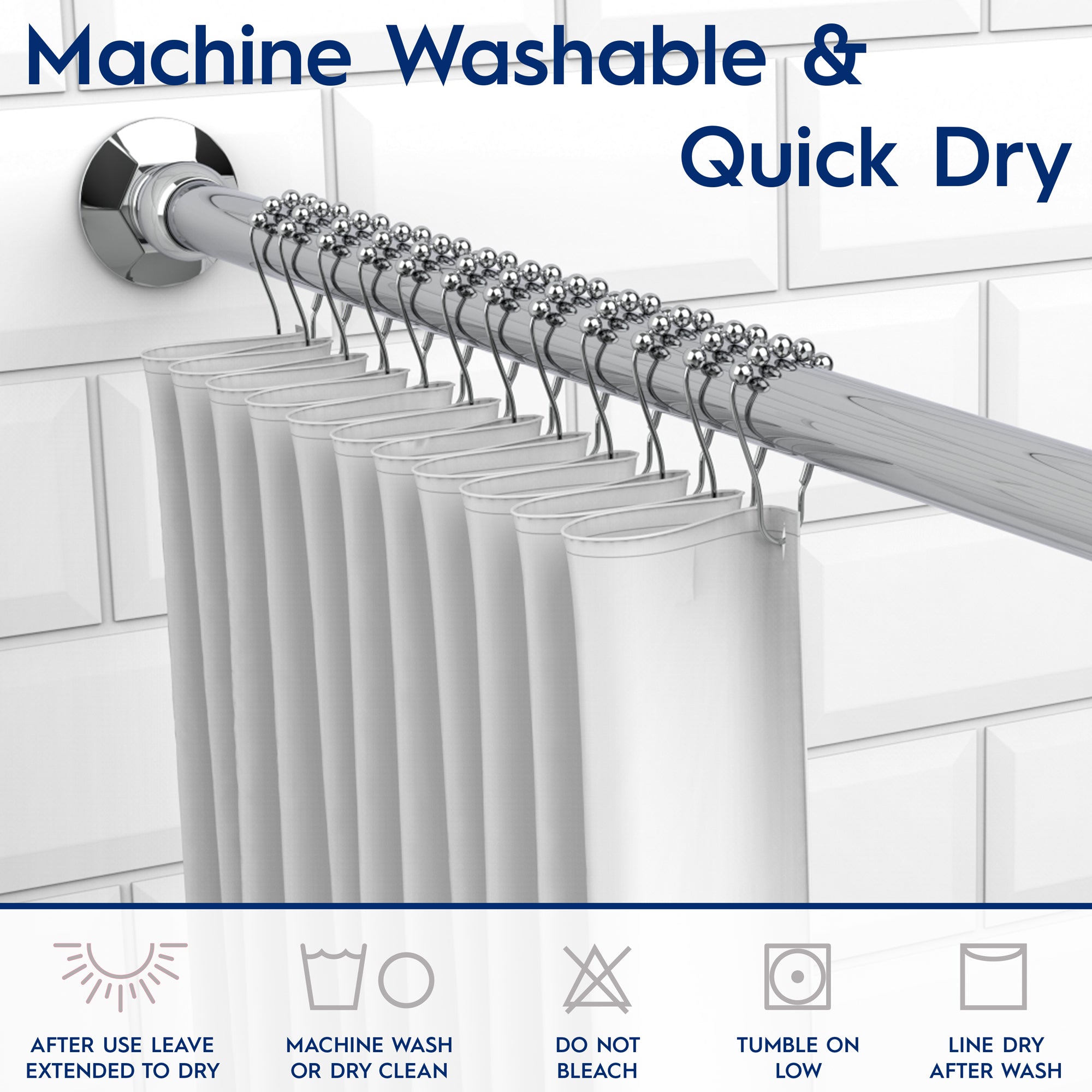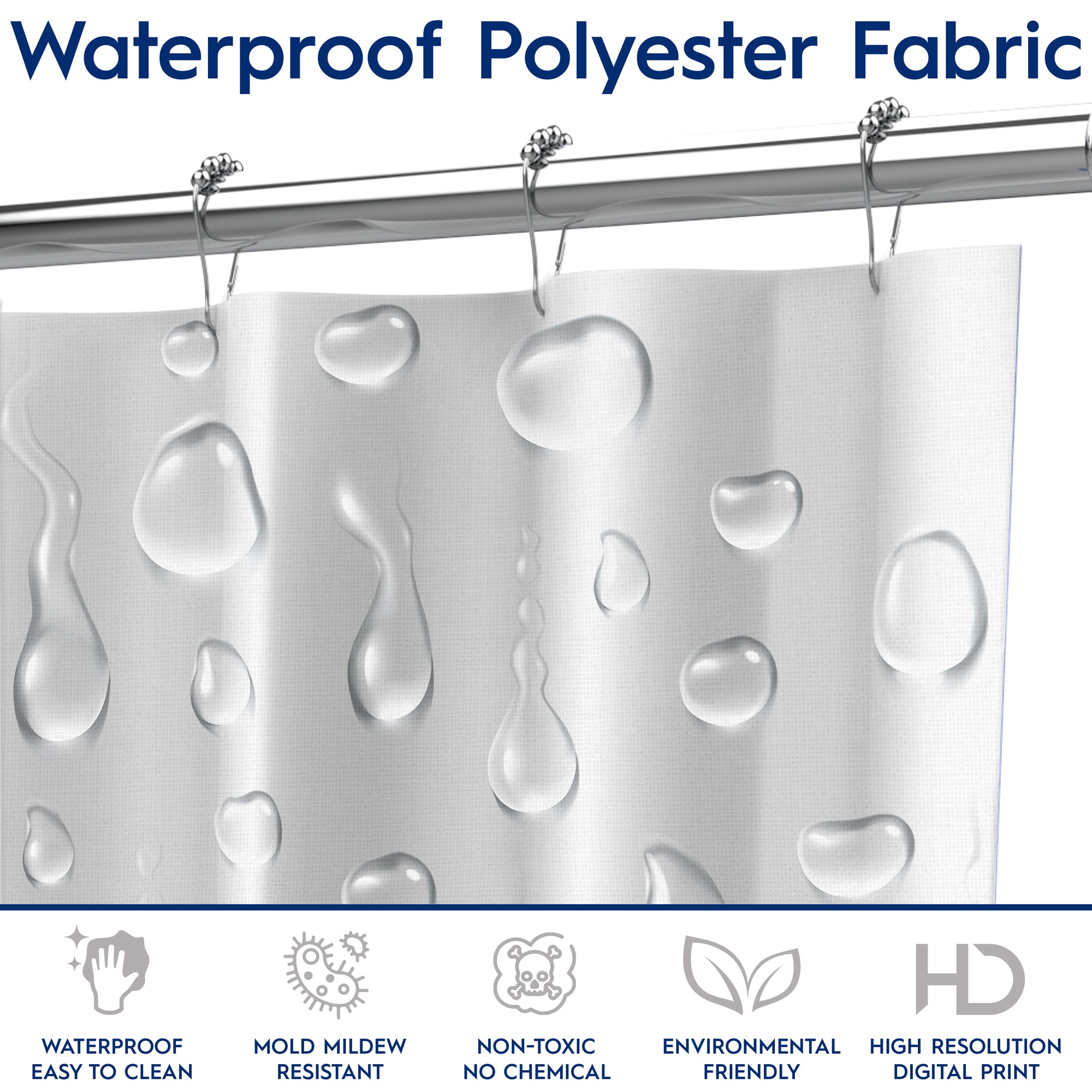 PREMIUM QUALITY: This mold and the mildew-resistant shower curtain is a heavy-duty 100% polyester fabric that is 110 GSM, extra thick, waterproof, with a weighted shower curtain hem.